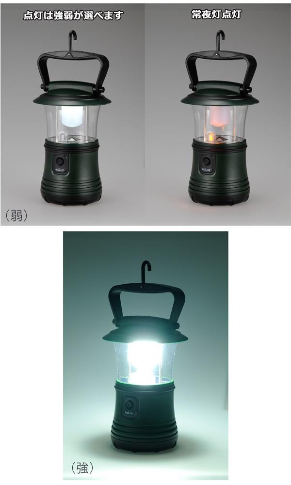 太陽光に近い昼白色の光が優しく照らしてくれます。点灯は強弱を選ぶことができ、常夜灯付き。「吊り下げる」「持つ」「置く」と3通りの設置が可能です。