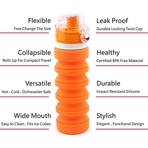 High Capacity -- Lightweight and compact makes this clever design collapsible water bottle convenient to bring with you anywhere you go. allows you to hydrate your body at any time;. A check valve design prevent liquid to go out even if you hold it upside down.