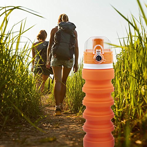 Collapsible -- collapsible water bottle silicone allowed to be folded to 6 different size for easy transport. Retainer band for clip-on and storage, stand stable even with less water. Design makes it portable on the go. Ready for anywhere.