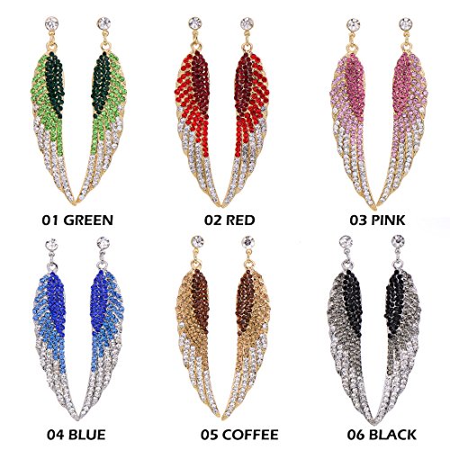 Pipitree Luxury Austrial Crystal Angle Wing Dangle Earring Long Feather Earring