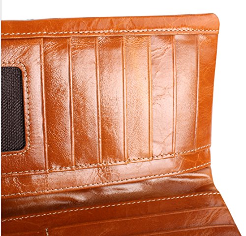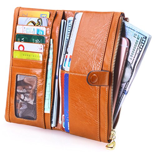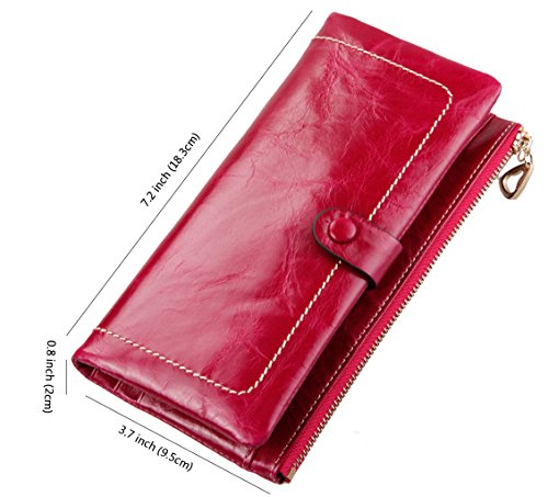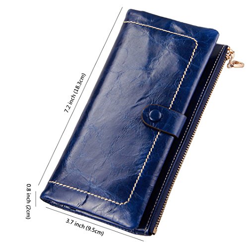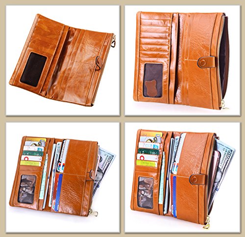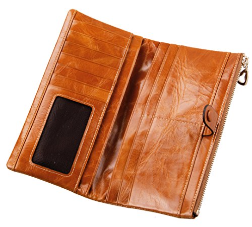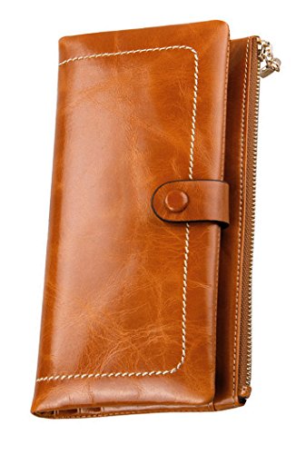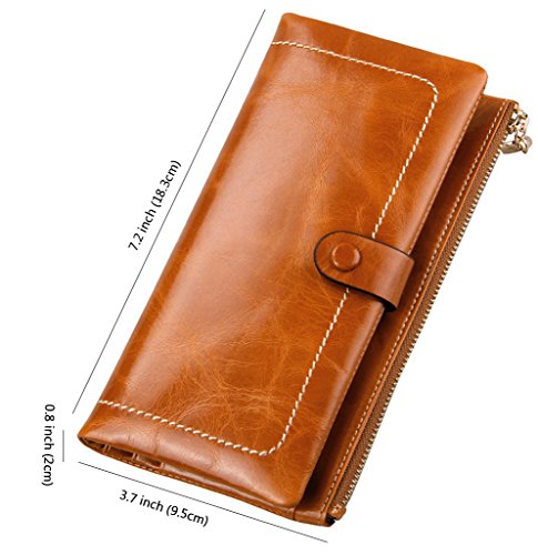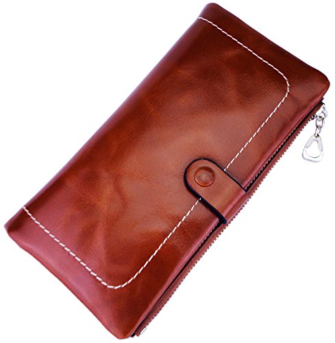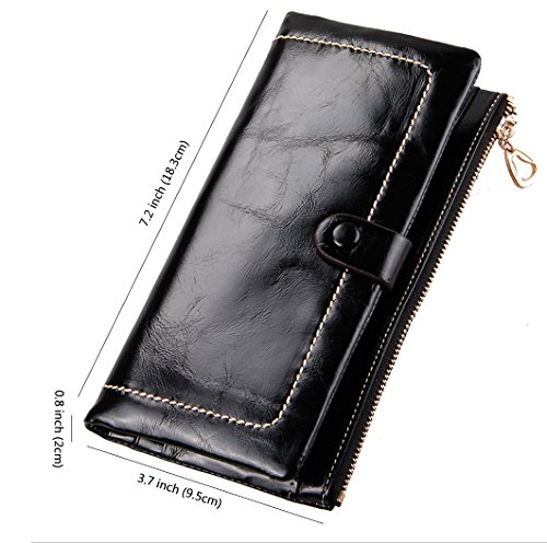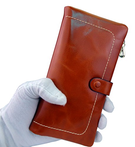 Binding : Apparel Product Description Main Material: - Material:100% Genuine Leather with waxing and oiling finish; luxury looking and feel. Dimensions: - 7.2"L x 3.7"W x 0.8"H; about 0.2lb;you can simply hold it on hand or put it in bag. Capacity: - Powerful internal structure, great size and good amount of compartments, 10 card slots(including 1 id window),2 full-length bill compartments,1 snap pocket and 1 zipper pocket . Can easily hold your money, credit cards and your iPhone6, is enough for daily use, very convenient and practical.