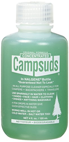 -. Binding : Sports -. Brand : Sierra Dawn -. EAN : 0855020000093 -. Feature : Original Formula Campsuds in durable, reusable, leak-proof Nalgene bottles / Smells great too! / Use as a bath soap and shampoo, to wash and spot-clean clothes and to clean anything washable -. IsAutographed : 0 -. IsMemorabilia : 0 -. Label : Sierra Dawn -. Manufacturer : Sierra Dawn -. Model : 9 -. MPN : 371467 -. NumberOfItems : 1 -. PackageQuantity : 1 -. PartNumber : 371467 -. ProductGroup : Sports -. ProductTypeName : OUTDOOR_RECREATION_PRODUCT -. Publisher : Sierra Dawn -. Size : 16-ounce -. Studio : Sierra Dawn -. Title : Sierra Dawn Campsuds All-Purpose Cleaner in Nalgene, 16-ounce -. UPC : 855020000093