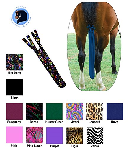 Studio : Sleazy Sleepwear Publisher : Sleazy Sleepwear Binding : Misc. Product Description Don't let all the hard work you have done on your horse's tail go to waste. Protect it with Sleazy Sleepwear for Horses's #1 selling tail bag. It help to protects the horses tail from dirt as well as smoothing the tail hairs. These tail bags are available in all of the fabrics and colors offered by Sleazy Sleepwear For HorsesTM. They are approximately 23 inches long and have four, 10 inch long lycra ties at the top for easy tying or braiding into the horses tail. * Never tie anything around the dock of a horse's tail. 0