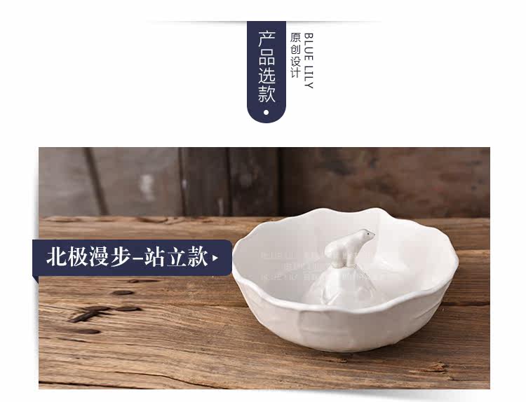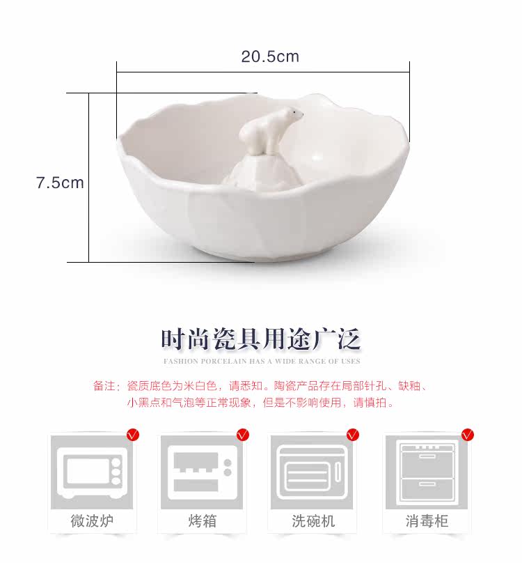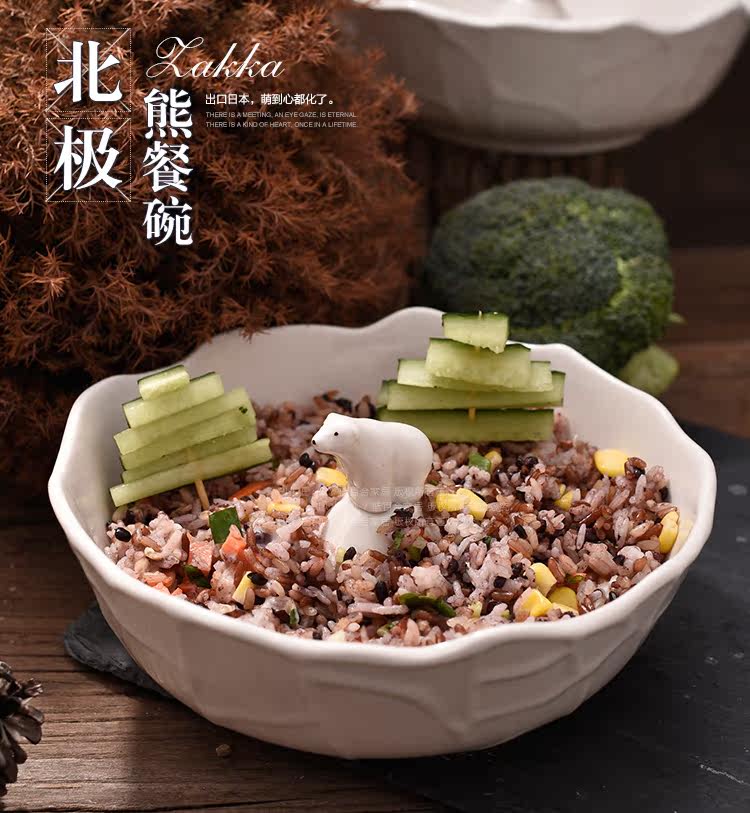 出口日本白色北极熊汤面碗萌动物大碗儿童汤碗摆拍神器可爱甜品碗