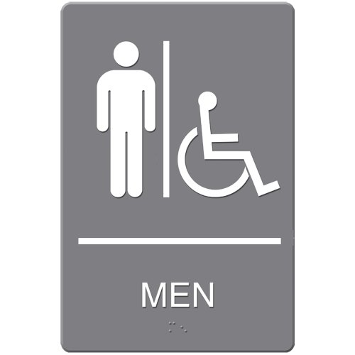 Headline Sign ADA Sign, Men Restroom Wheelchair Accessible Symbol, Molded Plastic, 6 x 9 Inches, Gray