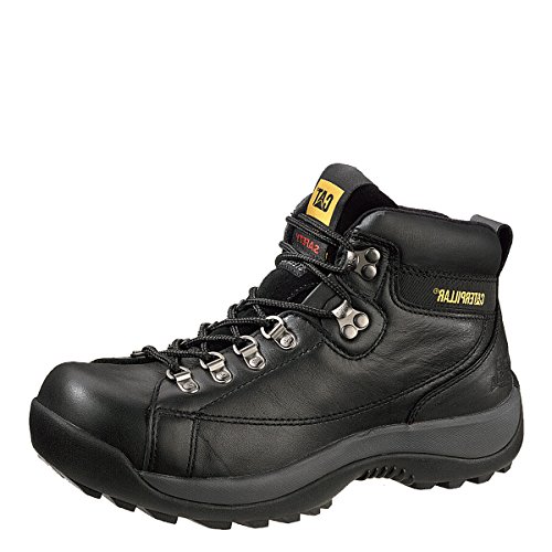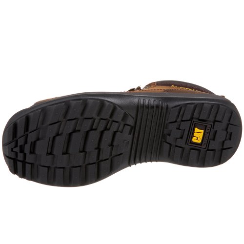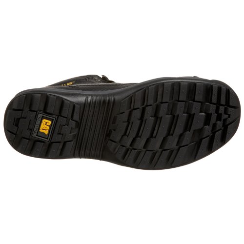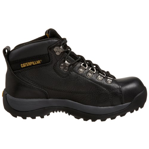 Amazon.com Step with power in Caterpillar's Hydraulic mid-cut boot. Featuring a full-grain leather upper; cement construction; a steel toe; and an outsole that is resistant to slips, oil, water, heat, abrasion, and electrical hazards, you're prepared for anything. 0