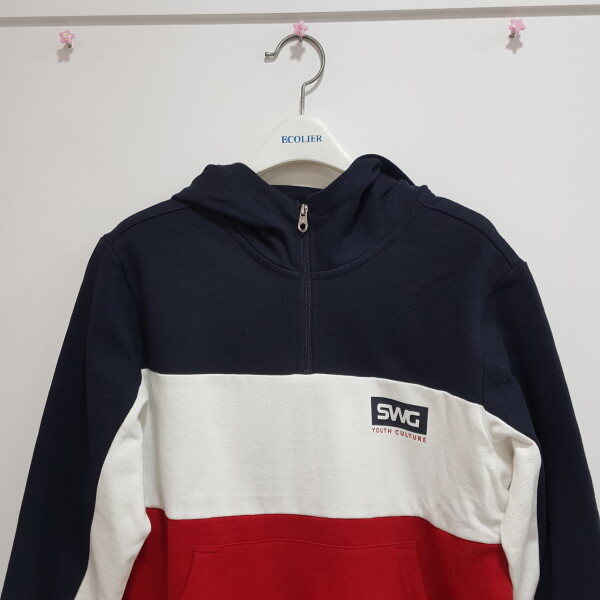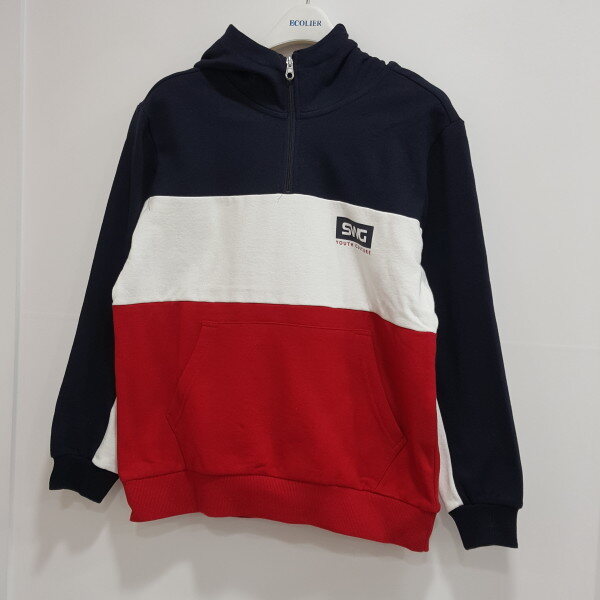 레드 배색이 있어 경쾌해이고. 반목집업이라 불편하지않고 후드가 있습니다