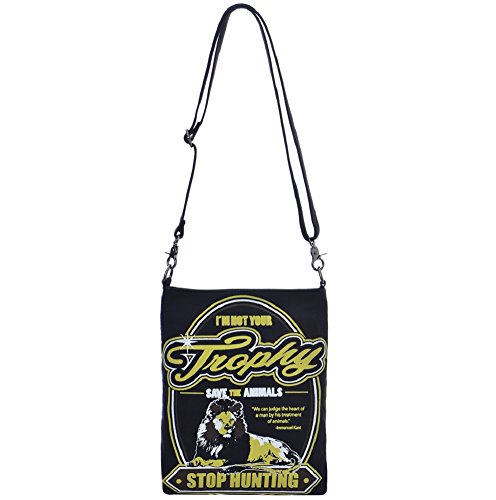 Studio : Calico Dragon Publisher : Calico Dragon Product Description A dignified lion rests atop a Stop Hunting sign on this sturdy, versatile canvas bag, accompanied by a quotation from Immanuel Kant. Mustard lettering with white and chocolate brown highlights featured on black background. This convertible purse can be worn as a shoulder-bag, crossbody bag, or as a backpack. The purse has 5 different attachment points on it and includes 3 adjustable straps so it can be worn different ways. Main compartment has a full-zipper closure. Interior is lined in neon yellow and includes a zippered pocket and two open side pockets. Constructed of canvas and other man made materials. Gun-metal hardware. Limited edition design. 0