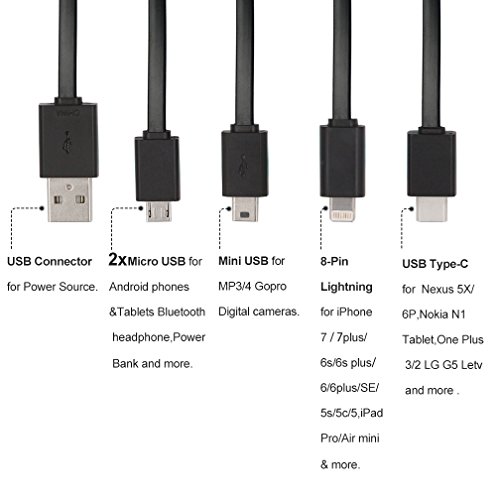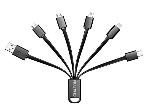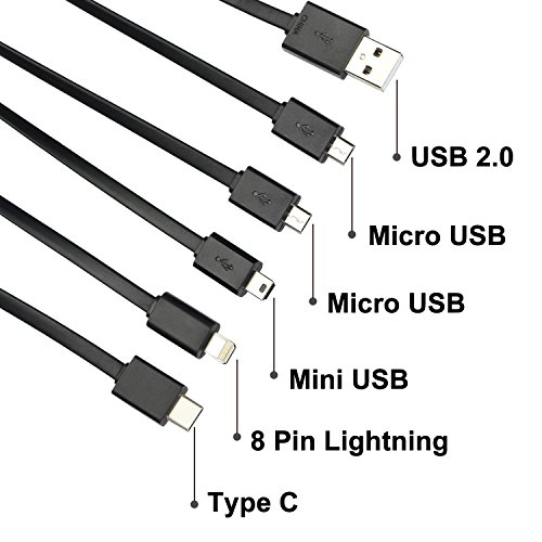 Chafon 6 in 1 Multi USB Charge Cable with Type C,Lightning,Mini,Micro,Connector for Smartphones - Black