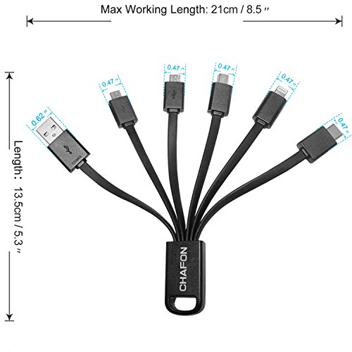 ★Handy:21 cm/8.5 inches max working length and 13.5 cm/5.3 inches length 6 in 1 multi usb cable.[Please note: This cable is Not MFI certified and Not support Sync Data]