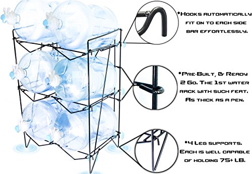 Stainless Steel 5 Gallon Water Bottle Rack Holder Shelves 6 Jugs Storage Heavy Duty Collapsible 60 Days 100% Risk Free (3 Shelves)
