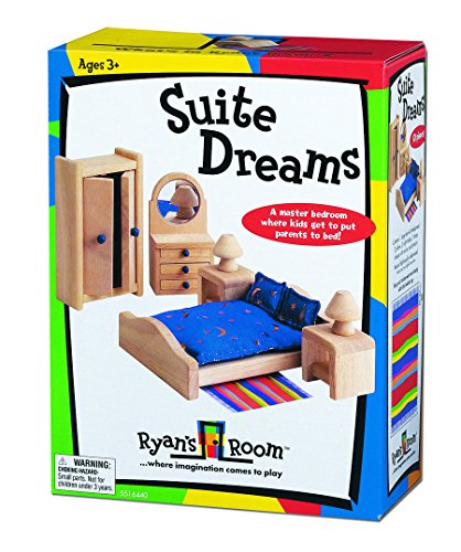 ReleaseDate : 2007-08-15 Studio : Small World Toys Publisher : Small World Toys Binding : Toy Product Description Your child will love adding the Small World Toys Ryan's Room Suite Dreams bedroom room set to his or her wooden doll house. It's fun to arrange the doll house master bedroom just the way you want to, with this quality wooden set. The 10-piece set includes: a large bed with a bedspread and 2 pillows, 2 night stands, 2 lamps, dresser with a mirror and an armoire with doors that open. The Ryan's Room collection includes a beautiful doll house and furnishings for every room (house and accessories sold separately). Sample measurement (armoire): 3'W x 1.5'D x 5'H. Suitable for children ages 3 and up. The Small World Ryan's Room collection inspires discovery and imagination, fostering valuable developmental skills kids will use for a lifetime. We call it play with a purpose - kids just call it fun. Small World Toys has been a leading toy manufacturer for 50 years. We believe that play is an integral and necessary part of a child's development and education. At Small World Toys, we are committed to developing fun, innovative, high quality products for children of all ages. 0