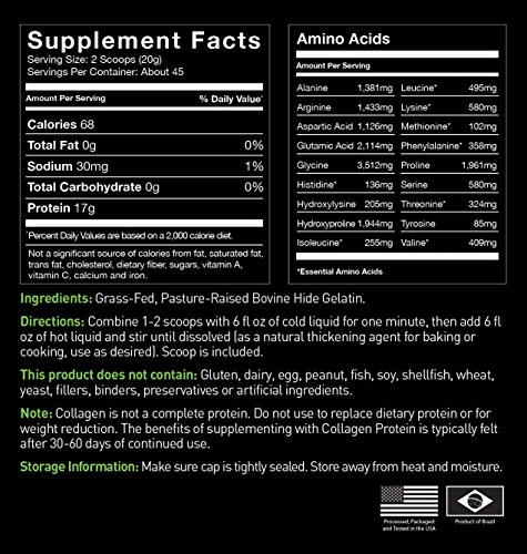 -. Feature : ANCIENT NUTRITION USED FOR CENTURIES PROVIDING HEALTHY GUT, JOINT AND SKIN SUPPORT / PACKED WITH PROTEIN, COLLAGEN AND AMINO ACIDS - PALEO FRIENDLY, KETO APPROVED AND NON-GMO VERIFIED. / EASY TO USE GELATIN POWDER FOR COOKING, BAKING OR AS A HEARTY WARM DRINK: Helpful hint: 1 Tablespoon of gelatin will firm two cups (one pint) of liquid. / SOURCED FROM PASTURE RAISED, GRASS-FED CATTLE / 90 DAY SATISFACTION GUARANTEE*