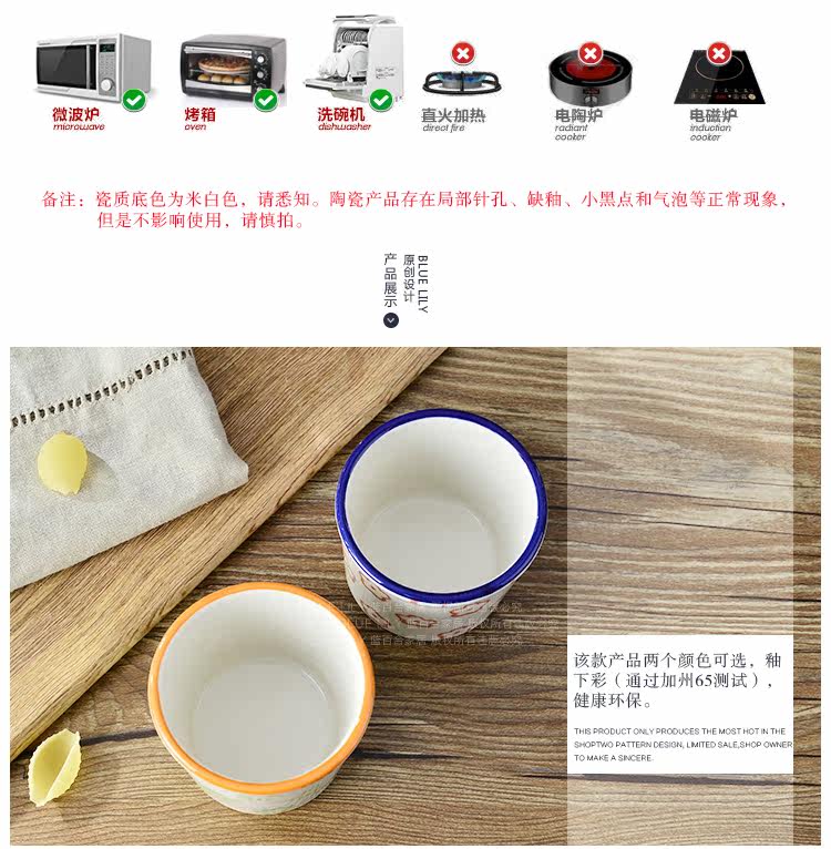 出口希腊 创意可爱陶瓷耐高温舒芙蕾烤碗 果冻布丁杯烘焙烤碗奶杯