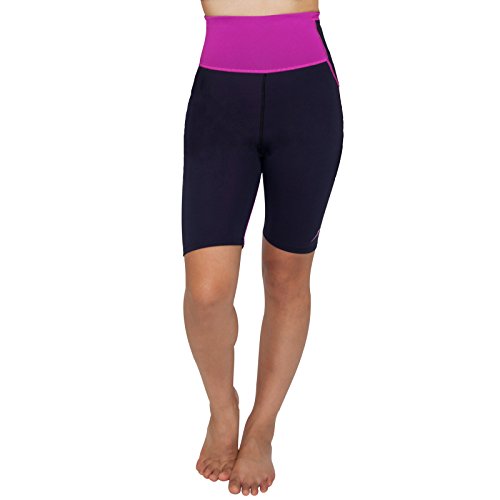 Delfin Mineral Infused High Waisted Shorts featuring Bio-Energy Technology. We listened to your feedback and have improved your favorite DELFIN COLLECTION! We are excited to introduce the change of the Bio-Energy Line to a Single Fabric Layer from the previous two layer design. The High Waisted design now has a wider waistband for a more comfortable feel and flattering look, without losing that excellent mid-torso coverage! Our Mineral Infused High Waisted Shorts integrate the latest technology in high performance fabric; utilizing 30 Minerals embedded in the Ink Pattern on the inside of the fabric. Minerals, activated by body heat, offer a range of benefits including muscle stimulation, improved circulation and reduced muscle fatigue to help enhance exercise. The key is the scientifically patented mineral formula which includes oxidized silicon, magnesium, alumina, and calcium. After being thermally activated, this formula creates vibration at the atomic level, resulting in energy, which it is transmitted to the body. Two key proven benefits include (1) Increased Micro-Circulation - achieved through inhibition of Rouleax formation in the blood (relating to the blood cell clotting and oxygen movement) and (2) Energy Enhancement - achieved through increase oxygen rate and skin cell vitality. Our Mineral Infused Collection includes exercise shorts, capris, high waisted shorts and high waisted capris. Suitable for everyday use and regular workouts, biking, jogging/running/walking, yoga/zumba, etc. Constructed of one layer high quality stretch Nylon/Polyester/Spandex fabric, offering great support, contouring, compression and coverage. Delfin Spa logo on bottom left front leg. We recommend hand wash and drip dry, but occasional machine washing is OK. You will find a better fitting product that maintains its great look, compression and amazing infused minerals to boost your workouts and energize your muscles!Feature