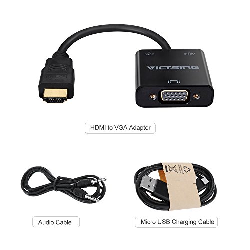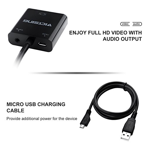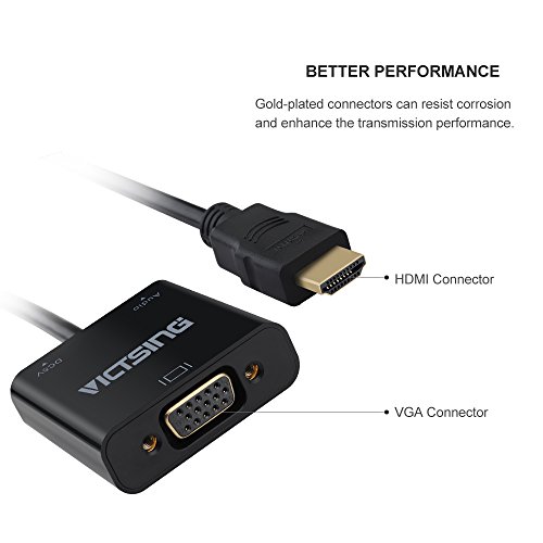 VicTsing Gold-Plated 1080P Active HDMI to VGA Adapter Video Converter with Micro USB and 3.5mm Audio Port Cable for PC/Laptop/DVD