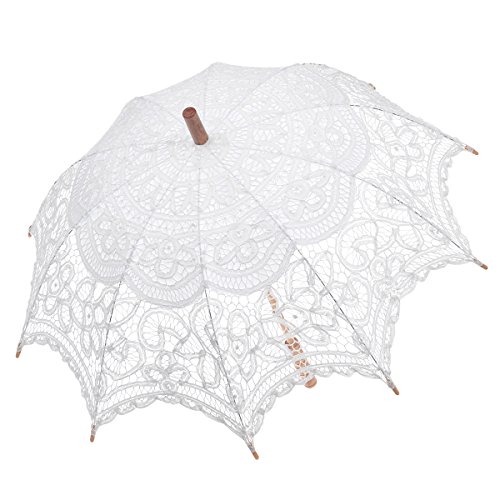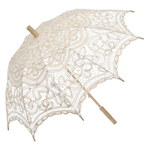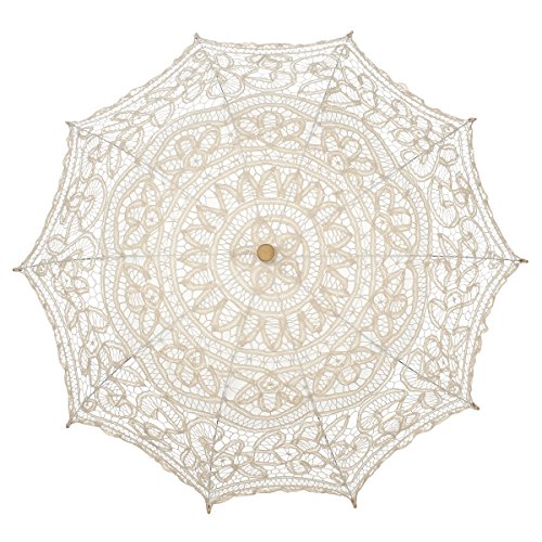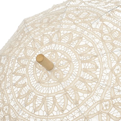 -. Feature : 25.6 inch(65cm)in length when closed, 30-31.5 inch(76-80cm) in diameter when open / Can't be used in rain, not waterproof / Individually handmade, vintage battenburg lace is elegant and classic, it will give you a Lace Shadow to complete your beautiful wedding photo / Great for wedding party, photo props shower, tea parties or just for dress up, with its lovingly crafted details, this umbrella will amaze any of your special day / For more styles, please search ASIN: B018AK3FH6 B018ARY0AU B018ARY94M B018ATD30G