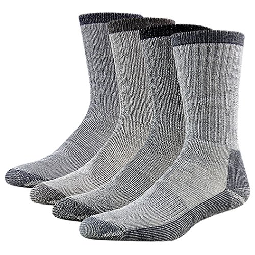 -. Binding : Apparel -. Brand : RTZAT -. Department : mens -. Feature : PERFORMANCE: Anti-bacterial, moisture-wicking, odor-resisting, temperature regulating, smooth toe construction, arch compression, longwearing, no itch, superior strength and durability, soft, thick, cushioned throughout for all day comfort. / BEST OUTDOOR SOCKS IN THE WINTER: Our socks work great with casual, snow, hunting, hiking boots & shoes. It's absolutely the best choice when you are going camping, hiking, trekking, hunting, climbing and mountaineering in cold weather. / BEST INDOOR SOCKS IN THE WINTER: Our merino wool socks are full cushioned with soft wool blend terry, which makes them super comfy and ultra warm. These socks are great to wear in bed and around the house to stay warm through the cold winter nights. / 4 COLORS: Black, grey, navy blue, brown(please see photo). / SIZE: Medium fits shoe size men/boys 7-9 women/girls 8-10. Large fits shoe size men/boys 9-13 women/girls 10-13. -. IsAdultProduct : 0 -. ProductGroup : Apparel -. ProductTypeName : SOCKSHOSIERY -. Title : Merino Wool Hiking Socks, RTZAT 4 Pairs Unisex Winter Thermal Camping