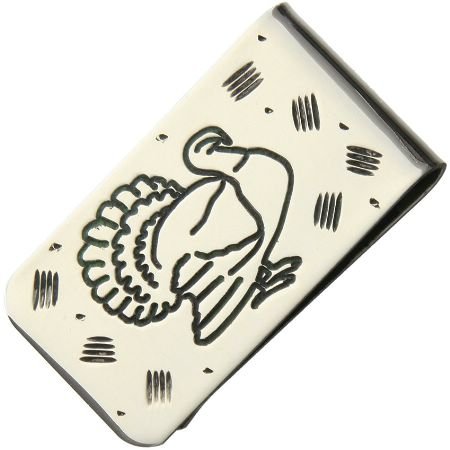 Studio : Brian Yellowhorse Knives Publisher : Brian Yellowhorse Knives Binding : Apparel Product Description Yellowhorse - Custom Money Clip Turkey. Model YH233. 1 3/4" overall. Stainless construction. Front features Turkey artwork. Back etched with Custom Brian Yellowhorse signature logo 2015. 0