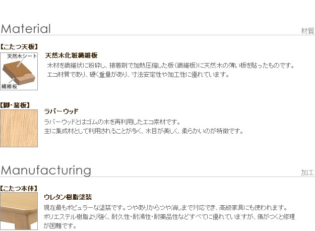 幕板・脚部:天然木(ラバーウッド)・ウレタン塗装
