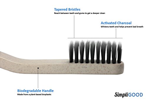 Studio : SimpliGOOD Publisher : SimpliGOOD Binding : Misc. Product Description Why buy a SimpliGOOD Biodegradable Toothbrush? The answer is simple.... You want to do your part. There is an estimated 6.3 billion metric tons of petroleum based plastic waste in the world and the United States produces an estimated 50 million pounds of petroleum based plastic waste every year from toothbrushes alone. Our goal is to change this one toothbrush at a time and you can help! We recognize that there are many options out there to choose from for your oral care needs and we applaud you for searching to find the best option available. While many offer all natural solutions and recyclable options we feel confident that we are the best option, our Biodegradable Toothbrushes are made from a plant-based bioplastic that perfectly marries the eco-friendly and biodegradable characterizes of a bamboo toothbrush with the comforts we all know and love of a traditional petroleum based plastic toothbrush. We love our toothbrushes, from the ultra-fine charcoal activated bristles and biodegradable handle to the eco-friendly and recyclable packaging we know you will love them too! At SimpliGOOD we are dedicated to helping others and the environment, that's why we donate a toothbrush and make a financial contribution to a non-profit or charity for every pack of toothbrushes you buy! 0