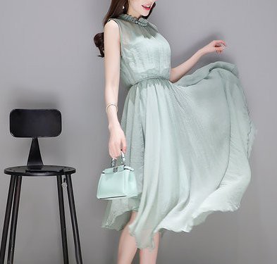 ふわりとしたシフォンのミモレ丈ワンピース。