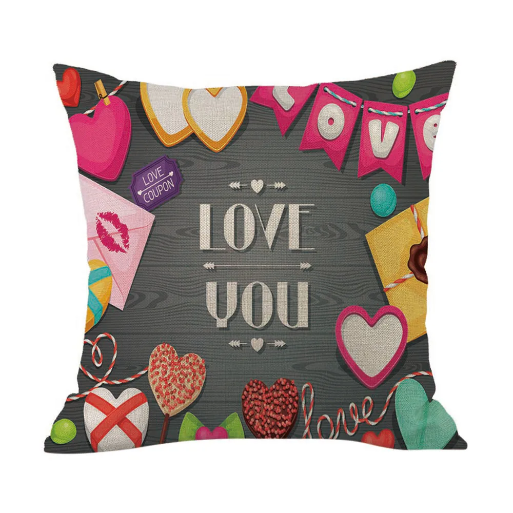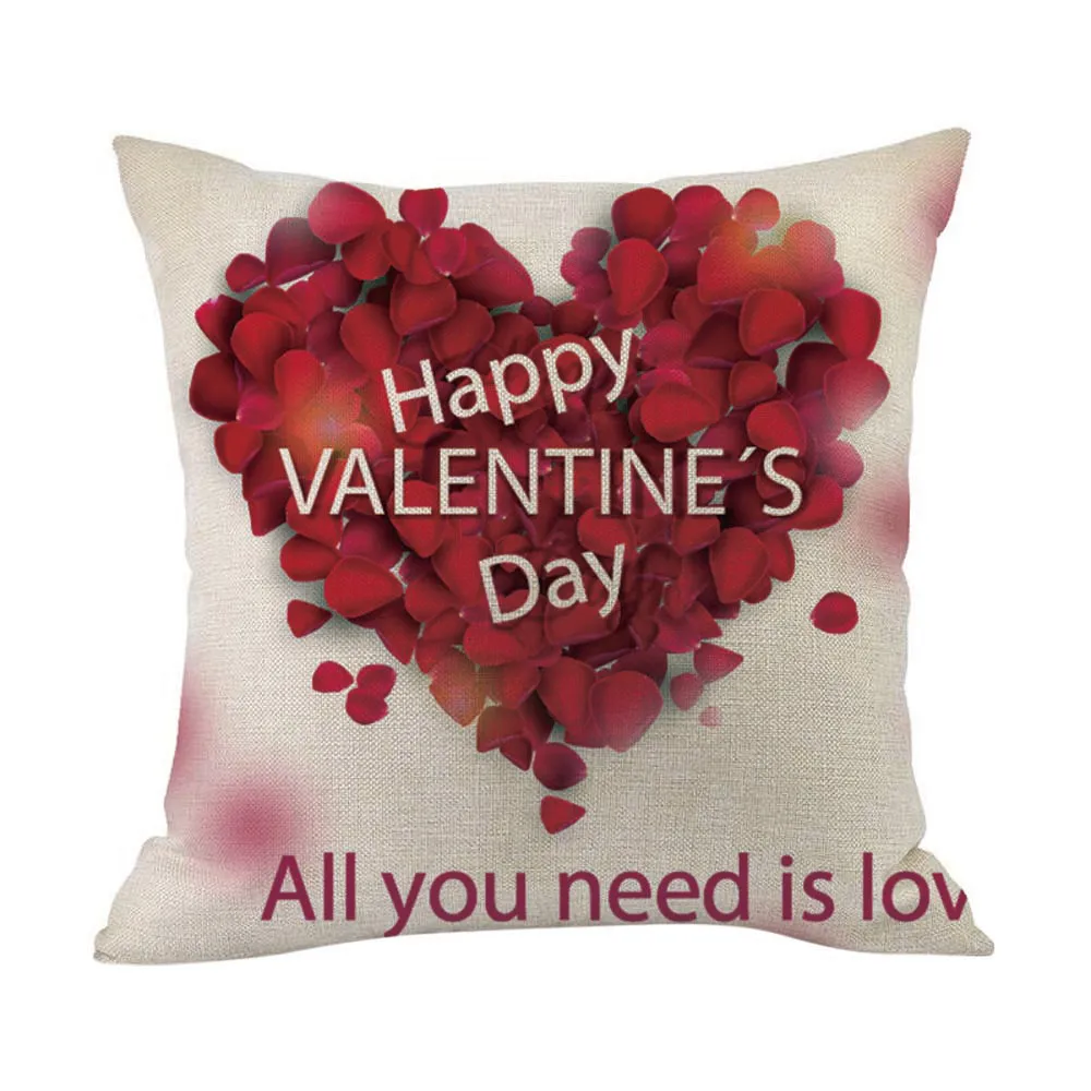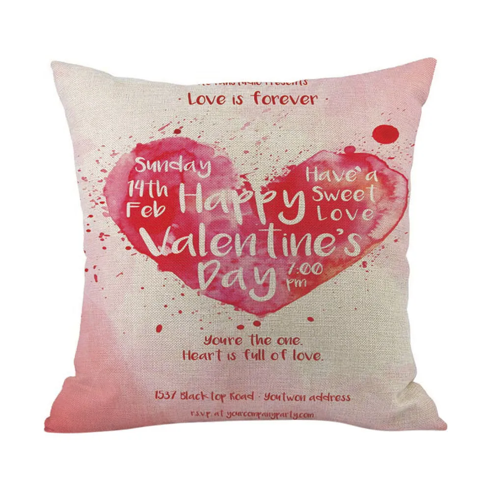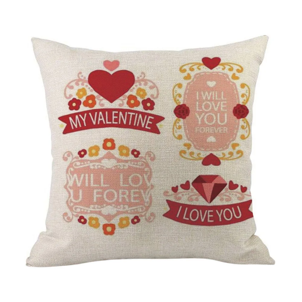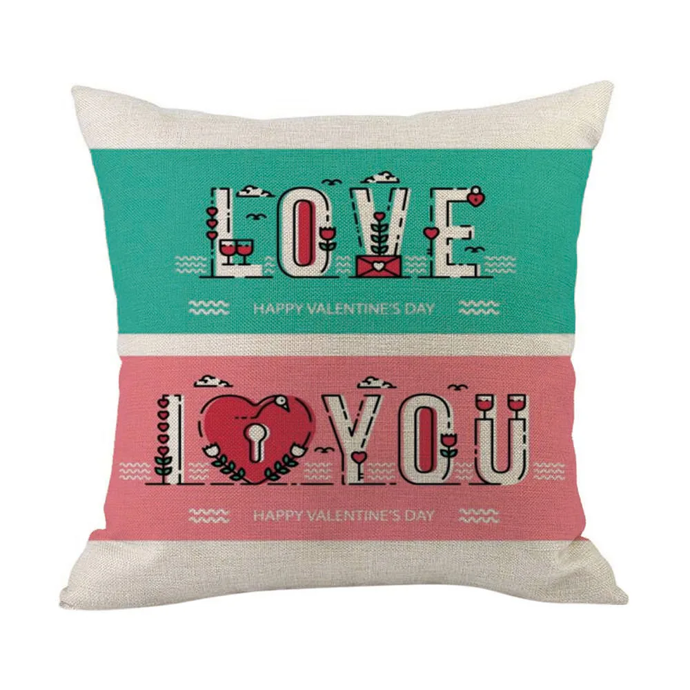 Happy Valentine Pillow Cases Cotton Linen Sofa Cushion Cover Home Decor
