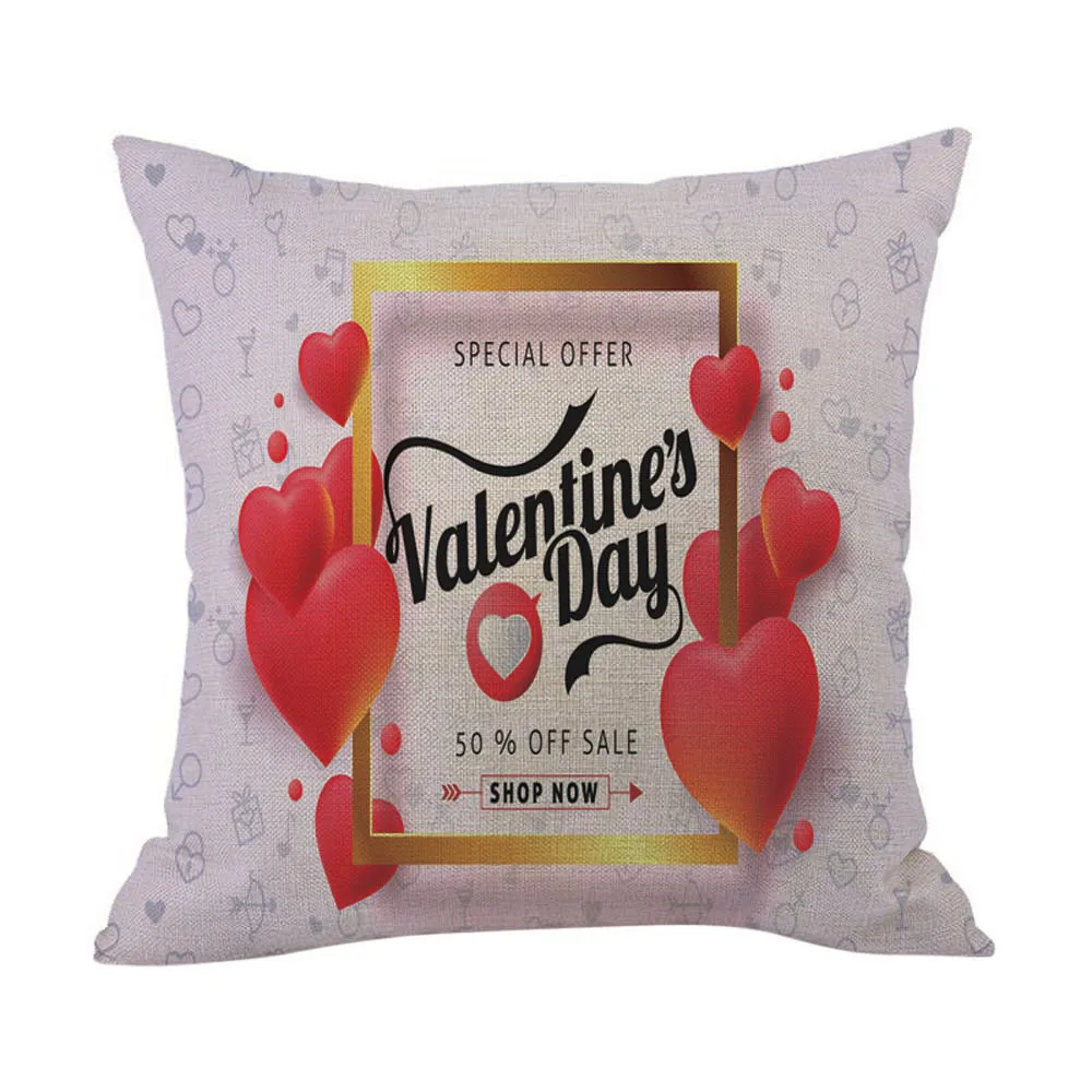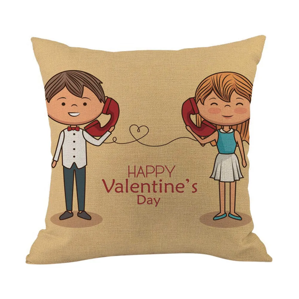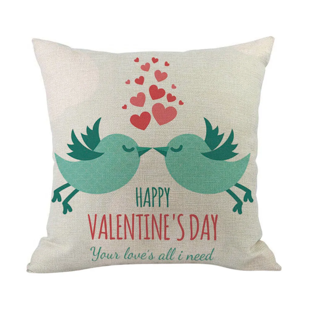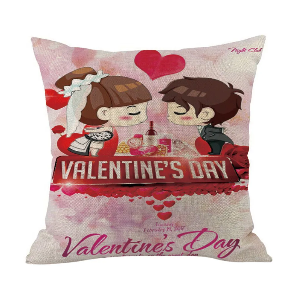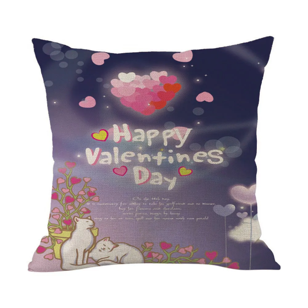 Happy Valentine Pillow Cases Cotton Linen Sofa Cushion Cover Home Decor