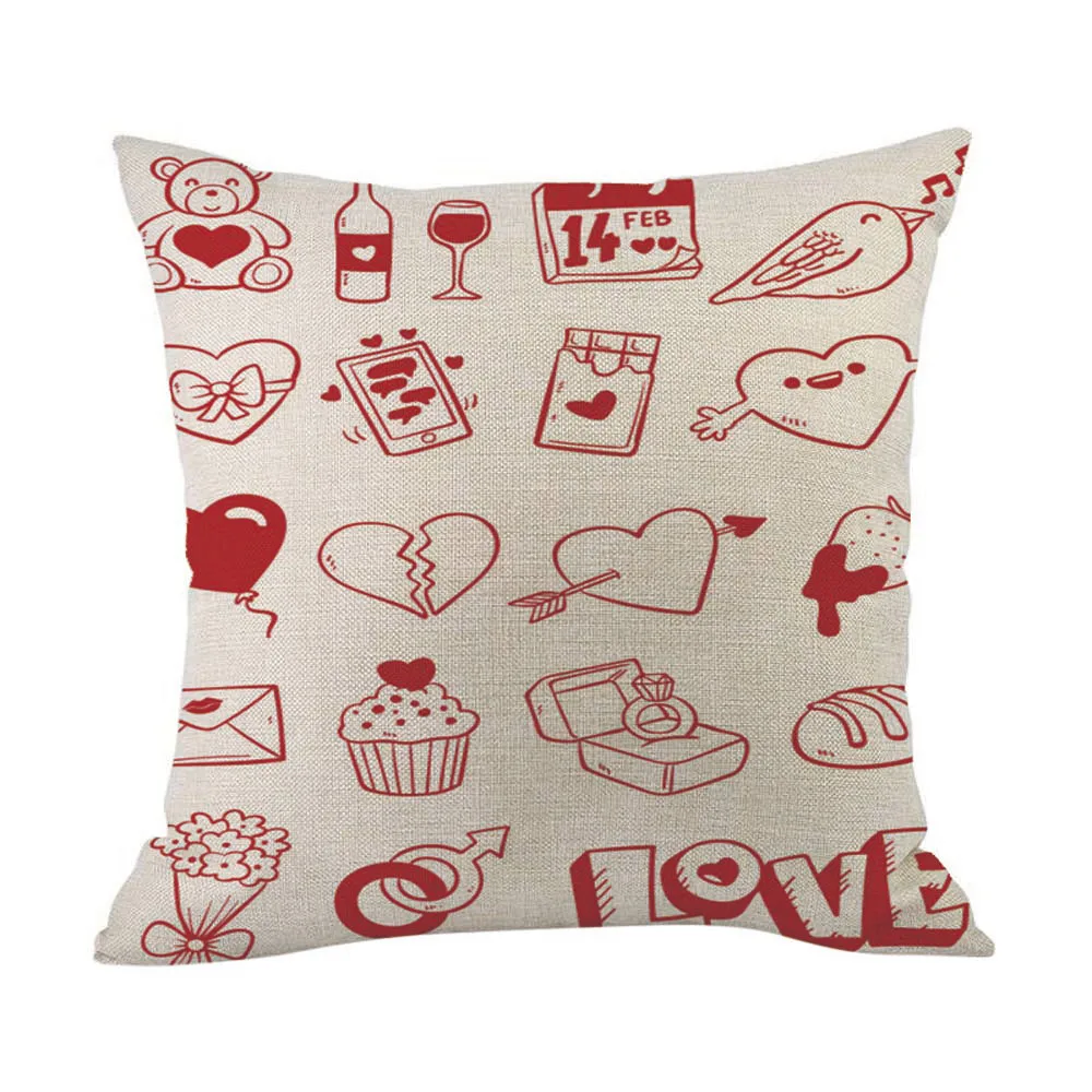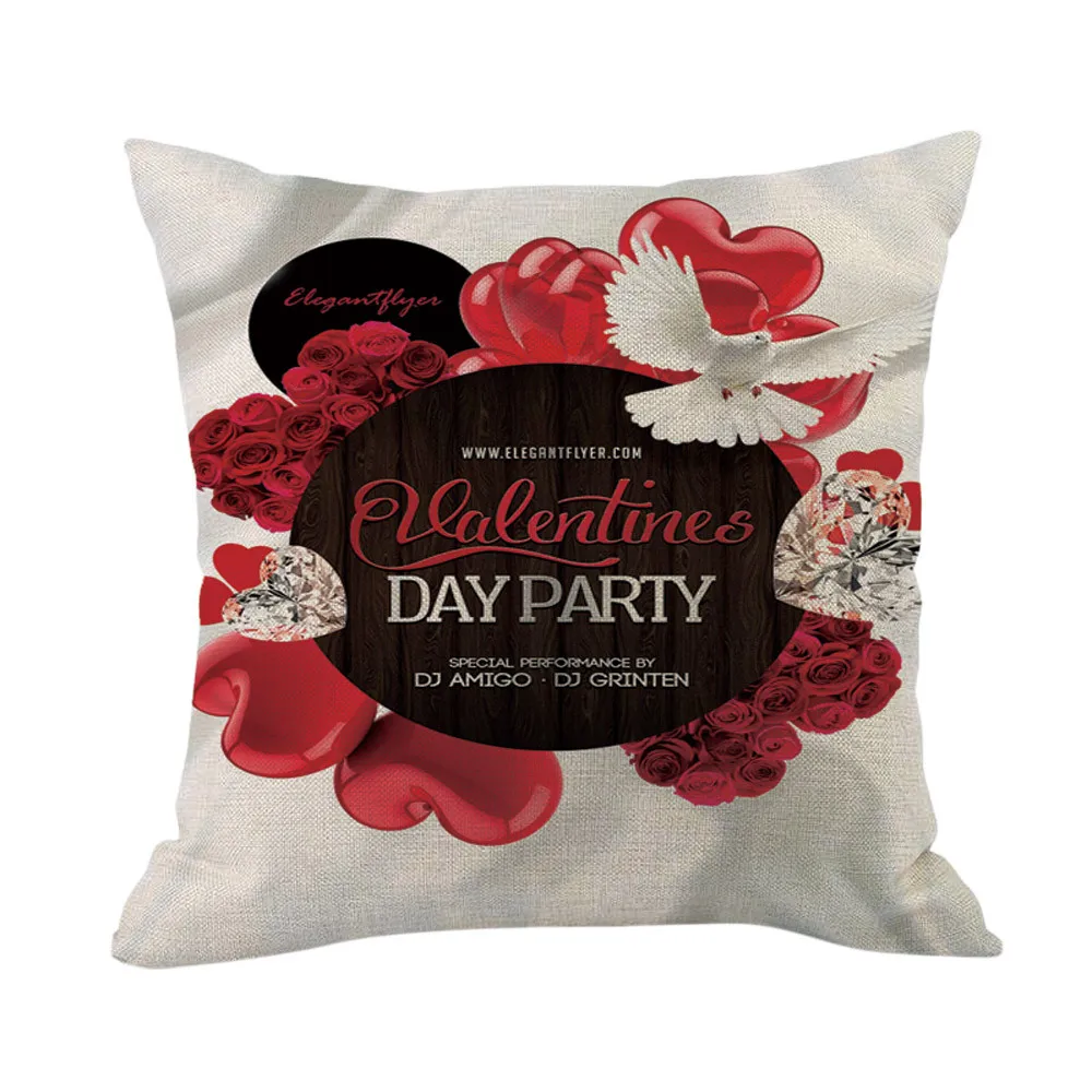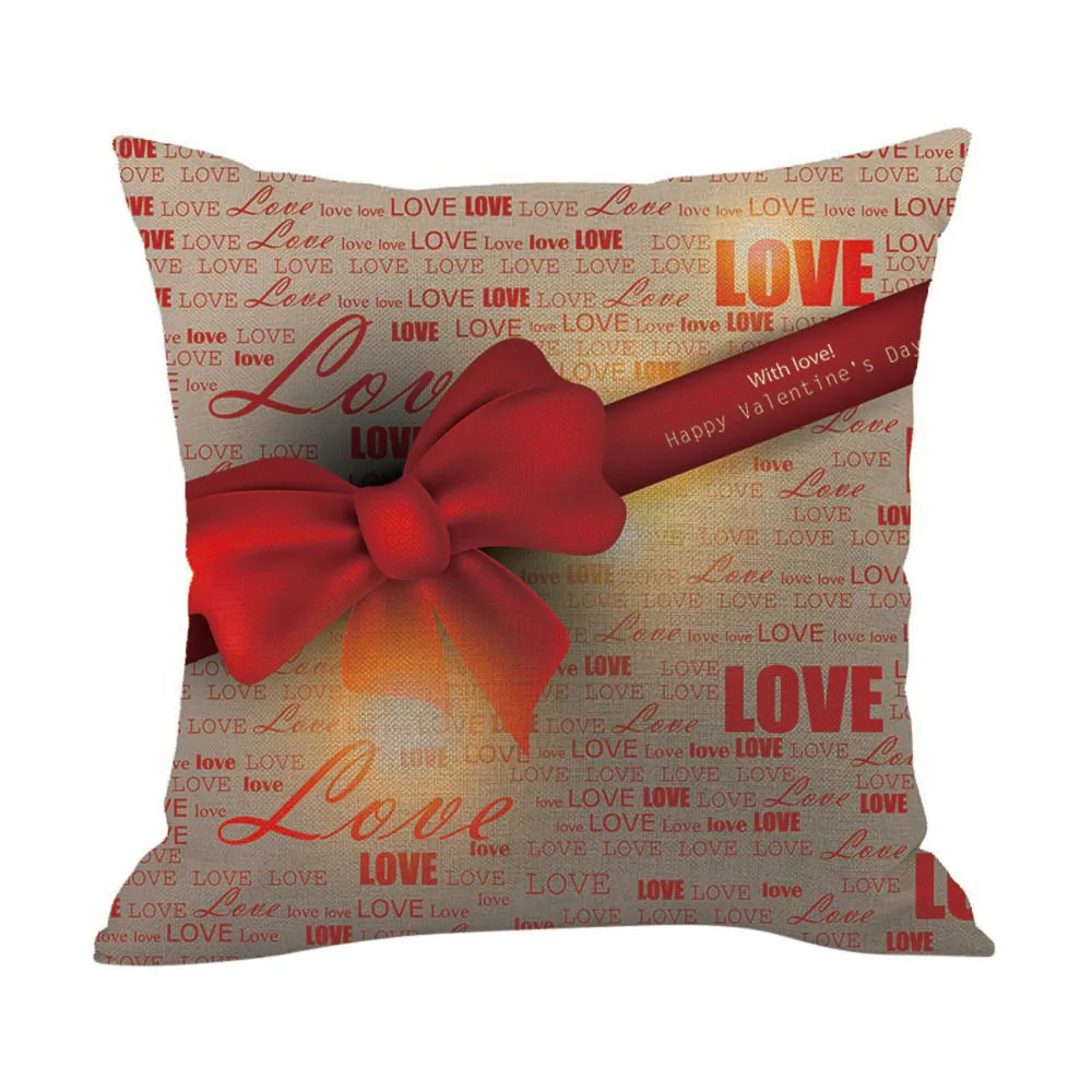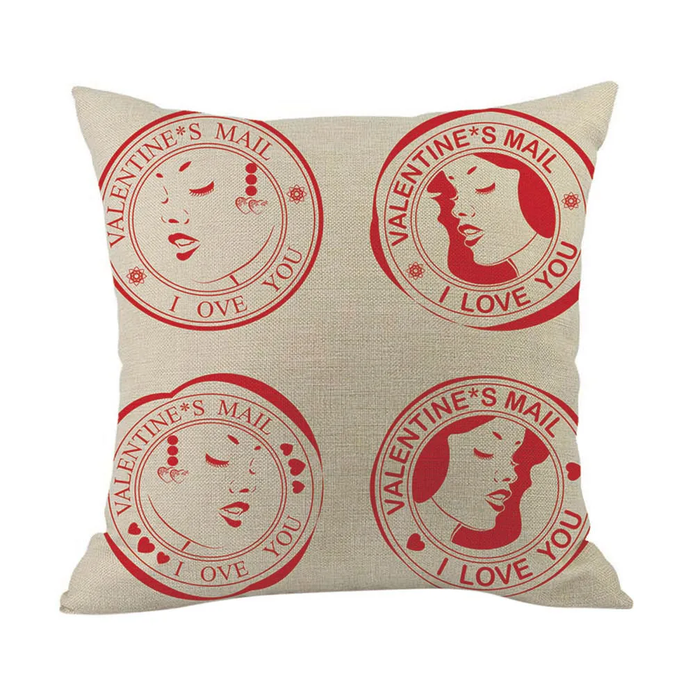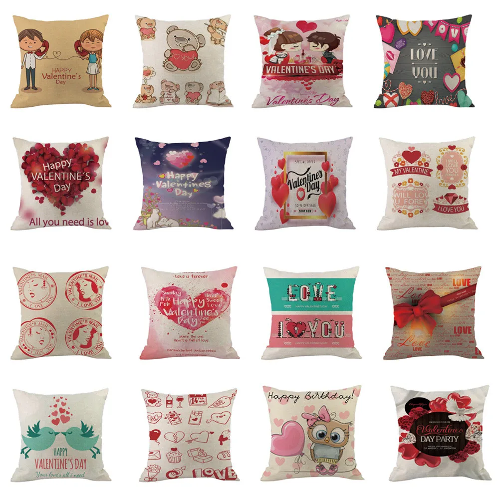 Happy Valentine Pillow Cases Cotton Linen Sofa Cushion Cover Home Decor