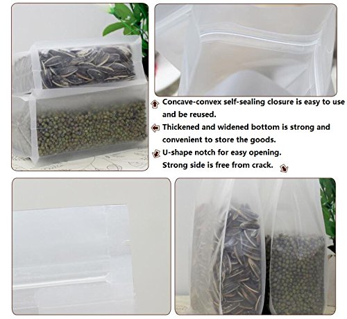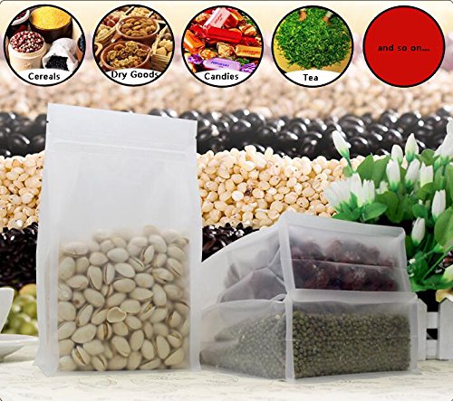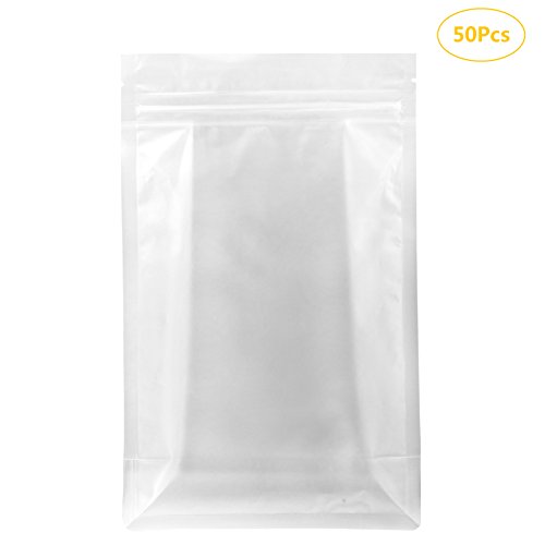 SumDirect Matte Plastic Zip Lock Self-Sealing Side-Gusset Stand Up Pouches Bags Matte, 6.2x10 Inches, 53oz, Pack of 50
