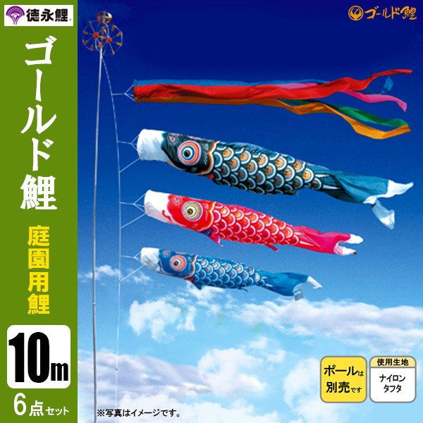 | ゴールド鯉 庭園用大型鯉のぼり ポール別売り | 7m鯉3匹 7m鯉4匹 7m鯉5匹 | 8m鯉3匹 8m鯉4匹 8m鯉5匹 | 9m鯉3匹 9m鯉4匹 9m鯉5匹 | 10m鯉3匹 10m鯉4匹 10m鯉5匹 |