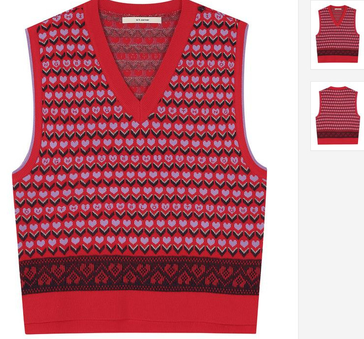 강렬한 레드 컬러에 다양한 멀티 패턴으로 포인트를 준 니트 베스트 입니다. 언발런스한 길이감과 슬릿 디테일로 활동성도 겸비한 아이템 입니다