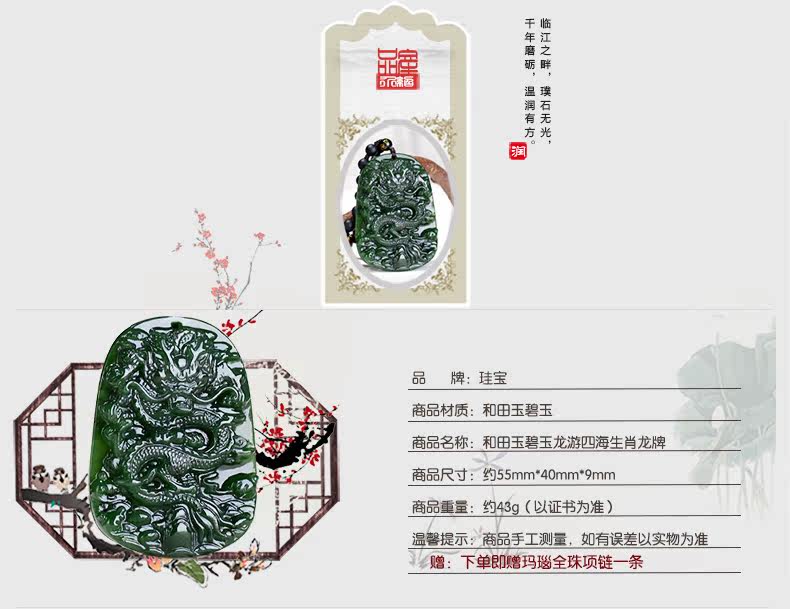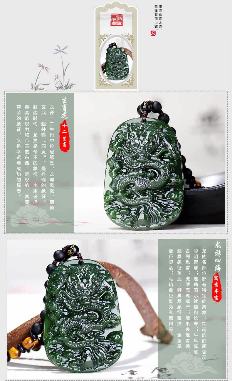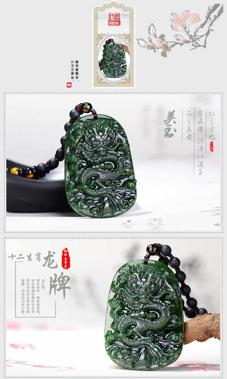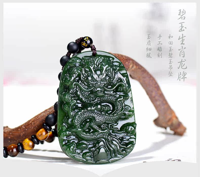 珪宝和田玉生肖龙吊坠男款碧玉龙牌玉坠女生肖龙玉牌男士玉佩挂件
