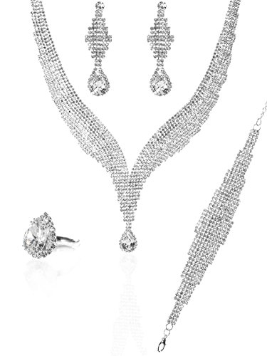 -. Title : MOOCHI Silver-Tone Wide Scarf Shape Cubic Zirconia Necklace Earrings Bracelet Ring Jewelry Set