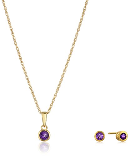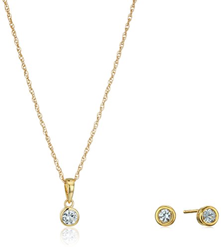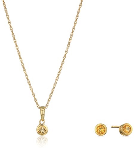 -. Title : Girls' Petite 18k Yellow Gold Plated Sterling Silver Birthstone Stud Earrings and 16" Pendant Necklace Jewelry Set