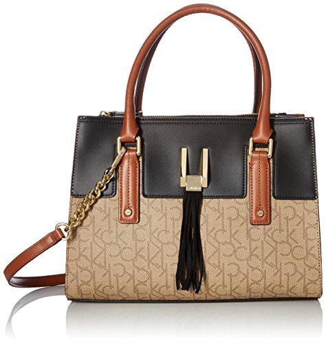 -. Title : Calvin Klein Rae Monogram Satchel, Text Khaki Brown Combo