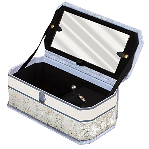 Belle Papier music boxes from Cottage Garden are beautiful and unique. They are covered in a beautiful design that includes intricate foiled accents. The inside of the box is lined in rich velvet. They include mirrors on the inside lid of the box. They feature a photo frame lid so the picture that is included can be replaced with a personal photo. Each box plays a beautiful wind up music box song that is listed in the product features. There is plenty of room on the inside to keep jewelry and small keepsakes.Feature