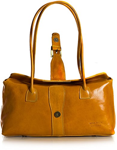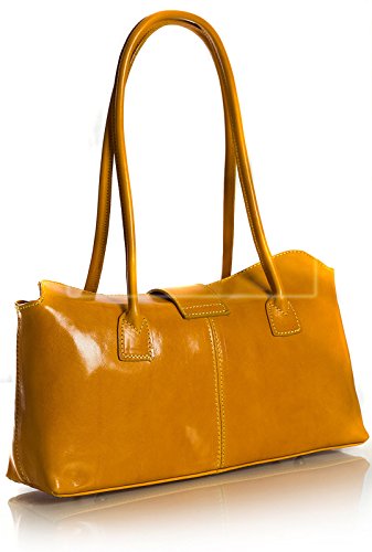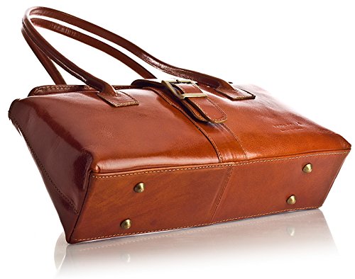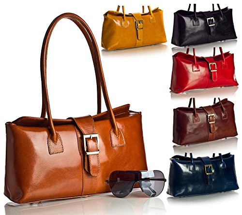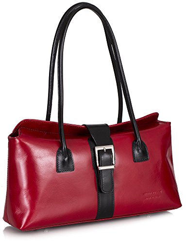 Big Handbag Shop Womens Genuine Italian Leather Buckle Detail Satchel Shoulder Bag (Red Black Trim)