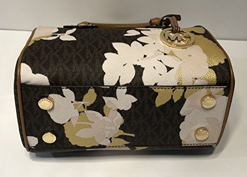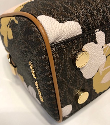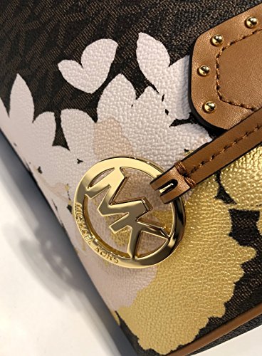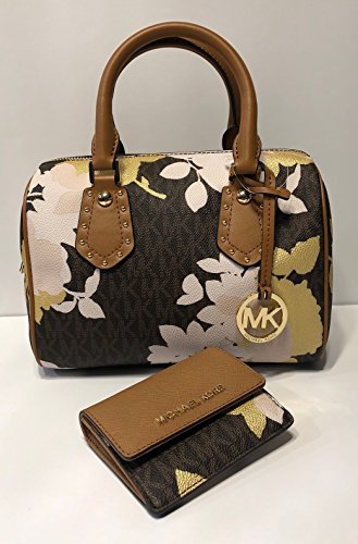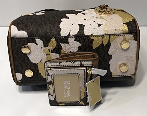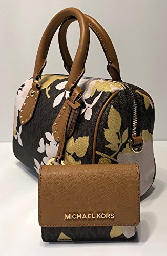 MICHAEL Michael Kors Aria SM Satchel bundled with Card Case ID Wallet Signature MK Brown Floral/Acorn