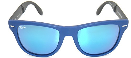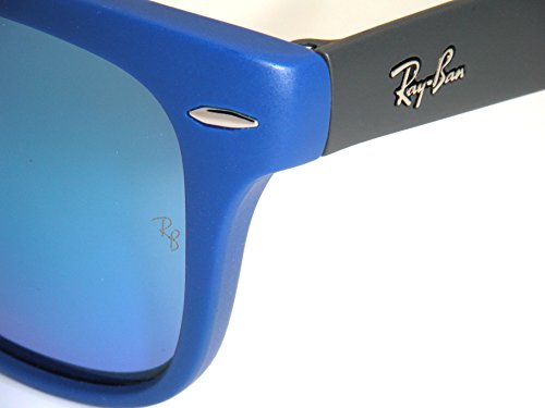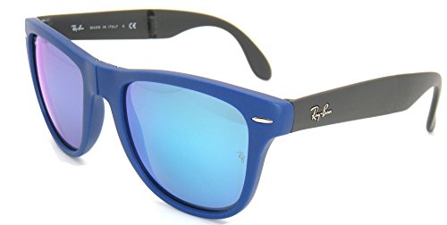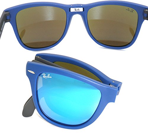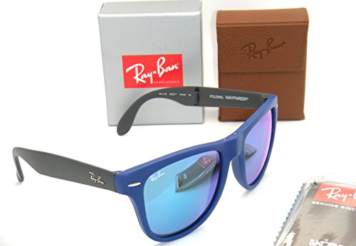 New Authentic RAY-BAN Sunglasses RB 602017 50mm Ray-Ban FOLDING WAYFARER Sunglasses MATTE BLUE FRAME WITH BLUE MIRROR LENSES SIZE 50mm Made In : ITALY Frame~Color: MATTE BLUE Brand : Ray Ban Gender : Unisex Style : FOLDING WAYFARER Condition : New in the Original Box Lenses~Type: Crystal Lens~Color GREEN ON THE INSIDE BLUE MIRROR ON THE OUTSIDE 100% AUTHENTIC AND BRAND NEW WITH RAY BAN-ORIGINAL BOX, CASE, CLEANING CLOTH AND LITERATURE. CHECK OUT MY FEEDBACK THEN BUY WITH CONFIDENCE. MARKS OF AUTHENTICITY TO LOOK FOR: RB IS LASER ETCHED ON THE LEFT LENS NEAR THE HINGE.(SEE PICTURES) The sunglasses come in either BROWN CASE -or- BLACK CASE upon the manufacturer discretion. FROM HINGE TO HINGE 135MM Vertical Eye Temple Bridge 41.5 50 140.0 22 PACKAGE CONTENTS RB 4105 602017 50MM RAY-BAN BOX RAY-BAN CASE RAY-BAN CLEANING CLOTH RAY-BAN LITERATURE info CATEGORY: Sun SHAPE: Square FRONT MATERIAL: Plastic TEMPLE: Plastic BRIDGE DESIGN: Standard GEOFIT: GLOBAL BASE: Base 6 RX-ABLE: Rx-able