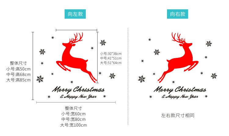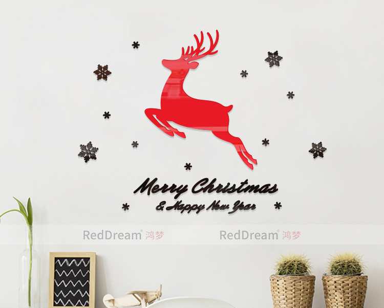 雪花麋鹿圣诞新年快乐3D立体亚克力客厅节日装饰背景墙创意贴画