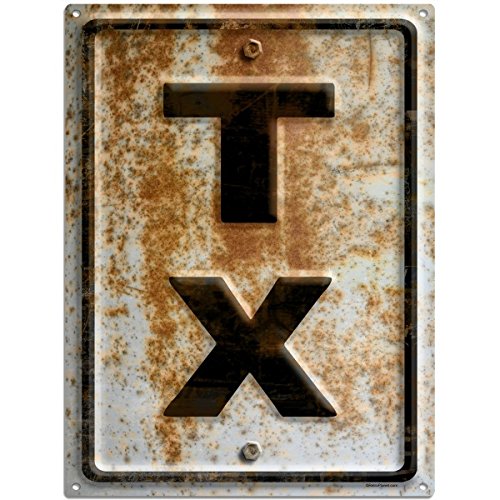 Texas TX State Abbreviation Rusted Highway US Travel Metal Sign