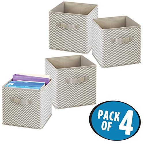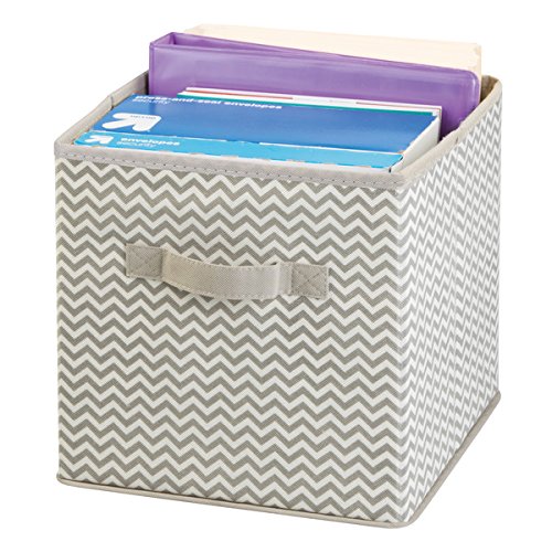 mDesign Fabric Office Storage Organizer Cube for Note Pads, Label Boxes, Paper - Pack of 4, Taupe/Natural