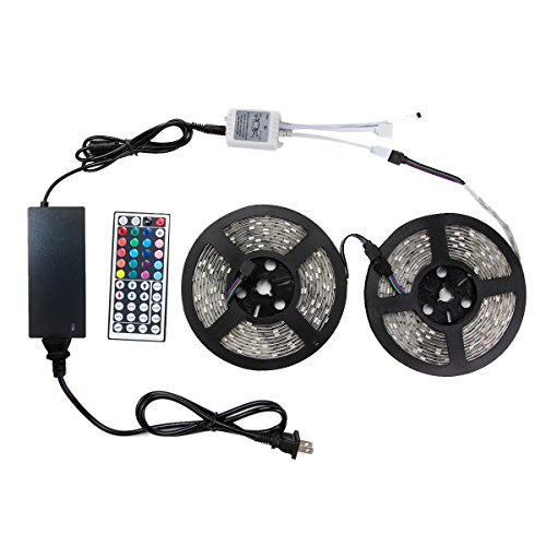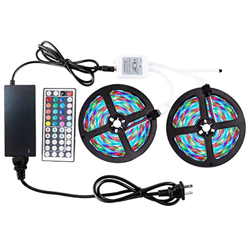 WenTop Led Strip Light Kit Waterproof SMD 3528 32.8Ft(10M) 600leds Led Tape Light Dimmable with DC12v Power Supply and 44K Remote Controller for Under Cabinet, Bed, Stairs, TV Backlighting - RGB Only