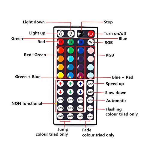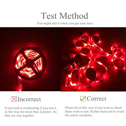 - This only have RED,GREEN and BLUE colors.NO OTHERS! The adaptor only can load 32.8ft. Please don't increase the strip light. Come with RGB LED strips, remote controller, AC adaptor and ir receiver. No more accessories are required. Don't leave them on the spool when you going to test it for more than 2 mins, it easy to lead to overheating.The ventilation must be ensured.These lights need an excessive amount of airflow for cooling.