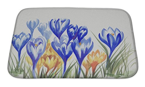 Gear New No Slip Microfiber Memory Foam Watercolor Painting of Crocus Flowers Bath Rug Mat, 24" X 17"