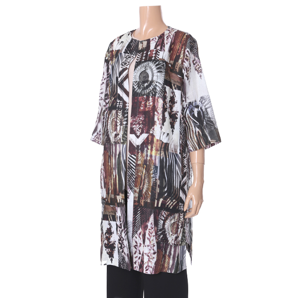 이 제품은 기하학적인프린트패턴의 세련된린넨롤코트로 다양하게 코디연출할수 있는 실용적인 제품 입니다