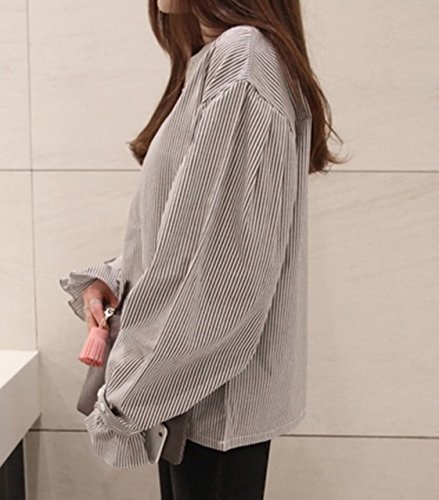 -. Title : (サニープール)Sunny POOL ブラウス シャツ ストライプ レディース ボリューム袖 秋冬オールシーズン カジュアル オフィス 通勤