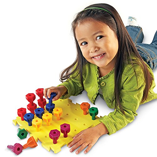 Kids will practice sorting, counting, and categorizing with 30 Rainbow Stacking Pegs. These oversized, hexagon-shaped pegs are easy to grasp. A double-sided tactile mat is printed on one side for number and shape practice. Includes two 36” laces and Activity Guide. Amazon.com Help children get a grip on math skills through play. The Rainbow Peg Play Activity Set, winner of a National Parenting Publications Award, is designed for many color, shape, and number activities. Thirty easy-to-grab pegs can be stacked, strung together on the colored string, or put into the reversible play mat. Children will need guidance for the structured activities included in the activity guide, but this versatile set allows for imagination and exploration through free play as well. --Lynne Sampson See all Product description 1