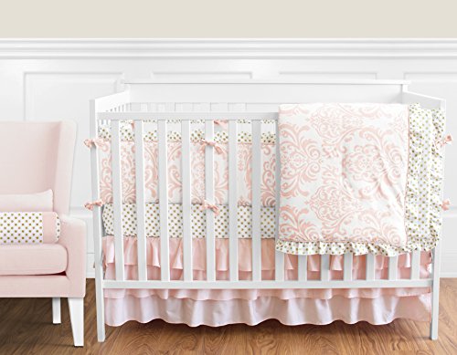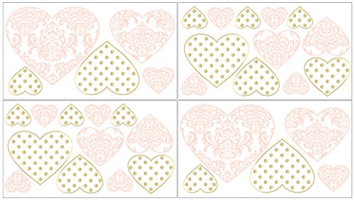 Sweet Jojo Designs 4-Piece Amelia Pink Damask and Gold Polka Dot Girls Baby and Kids Wall Decal Stickers
